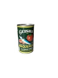 Ingredients: Mackerel (Decapterus maruadsi) (60 %), water, tomato paste, modified starch, salt, sugar, flavour enhancer: E621, guar gum: E412, colours: E160b, E160b